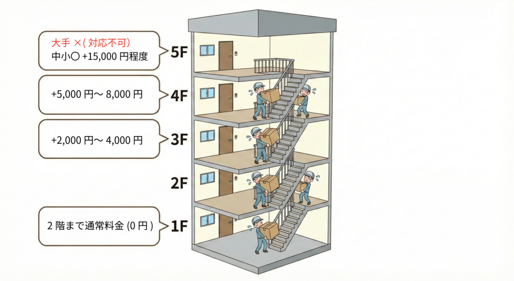 【図解】階段作業の追加料金はいくら?大手vs中小